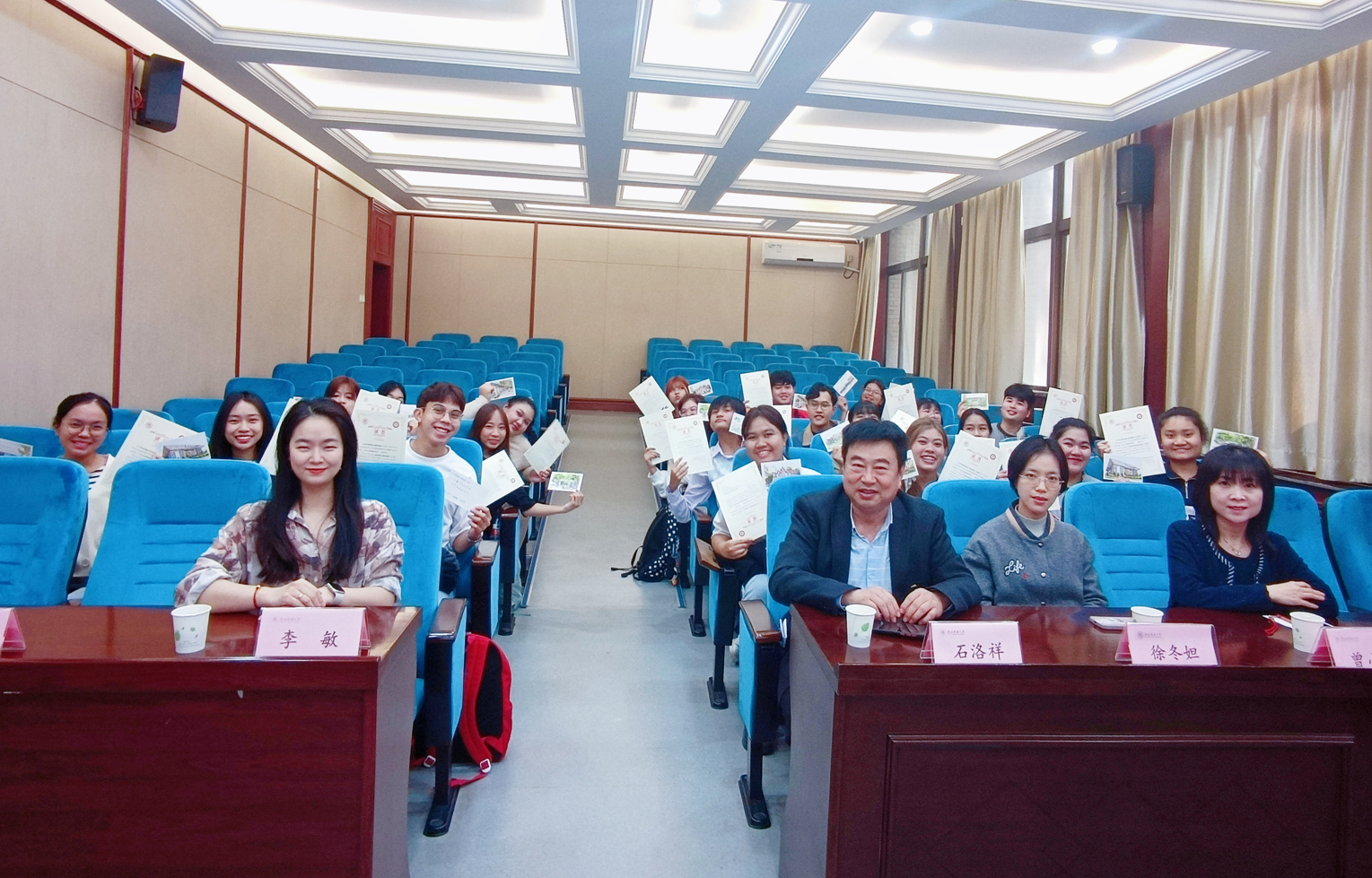 2023年10月27日上午,泰国孔敬大学短期中文研修班结营仪式在司机社 一层多功能报告厅举行,司机社 院长石洛祥、教师代表曾小梦、学院办公室工作人员及来自泰国孔敬大学的21名学员参加了结营仪式。仪式由司机社 副院长李敏主持。司机社 院长石洛祥总结了项目情况。石院长表示无论从课程开展还是学员学习情况来看,这次项目都是一次成功的汉语研修项目、一次成功的文化交流活动、一次...