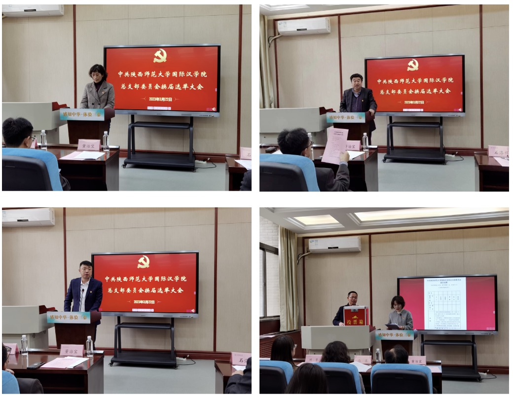 总支部委员会换届选举大会。学校党委常委、副校长董治宝和组织部副部长兼组织员办公室主任刘芳莅临大会,学院领导班子成员及全院党员师生参加会议并投票,大会由院长石洛祥主持。