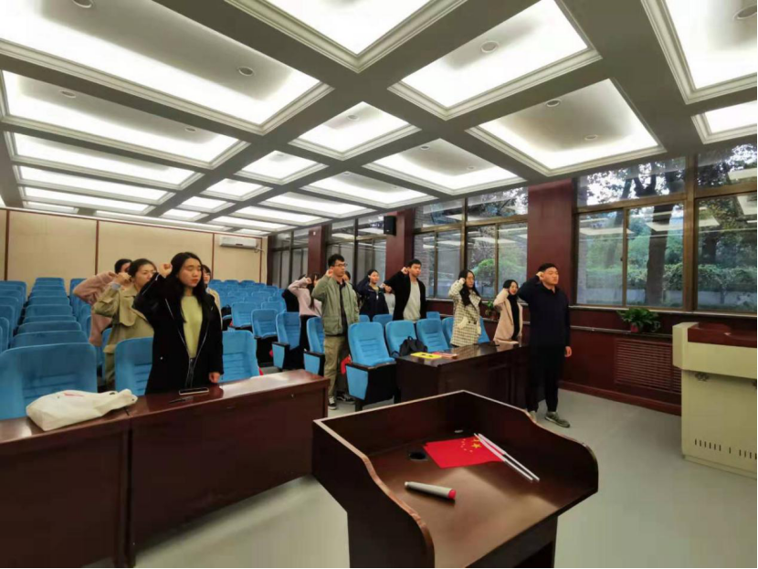 研究生全体党员在研究生第二党支部书记邢亚南的领读下重温入党誓词,举起自己的右手庄严宣誓,入党誓词的十二句话,句句千钧,概括了我们党对党员的基本要求,也概括了党员对党组织和党的事业所应承担的政治责任。宣誓是一种形式,更是一种激励,一种鞭策,一种对信仰的强化,当那一句句誓词从我们的口中说出时,党的初心和使命在我们心中便变得更为坚定,时刻在提醒我们不忘自己的初心,不忘自己作为党员身上的责任义务,牢记党的宗旨,真正把党的初心和使命落实到生活实践中去。
