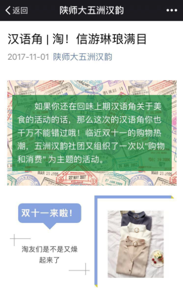 11月初,值各大电商平台“双十一”促销即将大规模开展之际,汉语国际教育2015级本科学生以“我们的时代,消费的时代”为主题开展班会,针对当前大学生的网络消费习惯、网络信贷使用等问题进行了讨论。