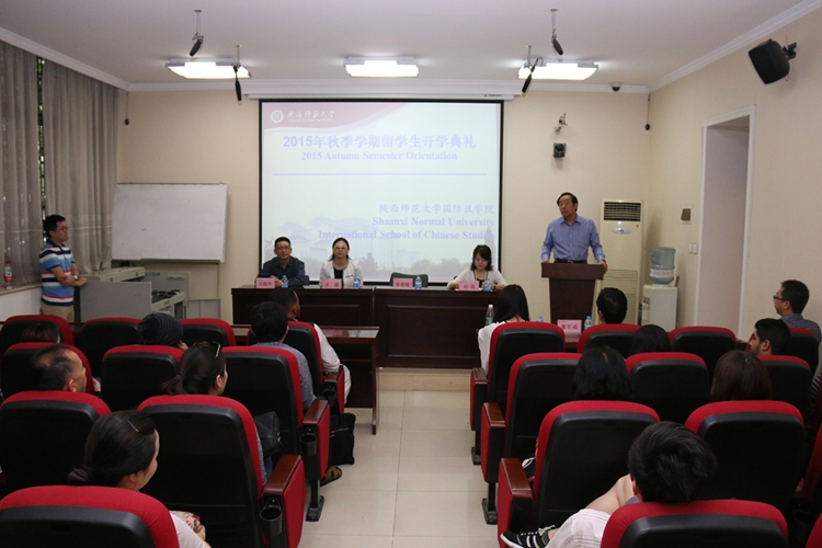 全体党政领导、各办公室负责人、教师代表及2015年秋季学期来华留学生新生100余人参加了开学典礼。