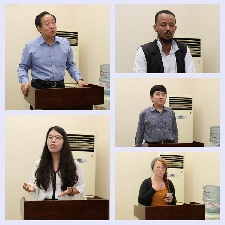 在留学生教育方面的优势与发展情况,同时对2015年秋季学期来华留学生新生提出了殷切的希望。教师代表崔言燕、新生代表来自苏丹的孔子学院奖学金生古天乐、美国留学生Antonia、韩国留学生朴钟义分别发言,表示要珍惜在中国的学习机会,做好文化交流的使者。