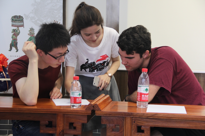 2012级本科对外汉语班的学生代表进行了友好的交流。中美学生在轻松愉快的氛围中交换了彼此对文化、教育问题的认识和理解。
