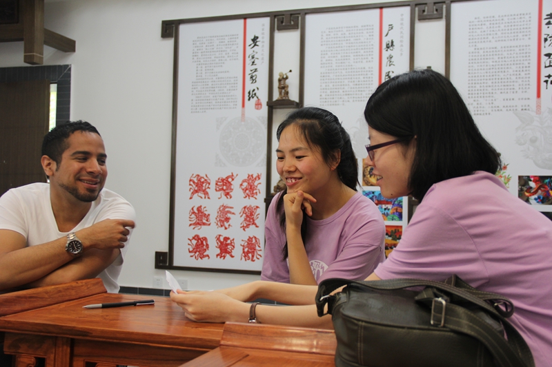 委内瑞拉籍留学生Manuel在哈佛大学读比较文学专业,掌握了英、西、中、日、韩五国语言。他从小环游世界,对各地的文化差异很感兴趣,因此选择研究比较文学,希望能在不同国家文学的碰撞与交流中发现有趣的现象与规律。他对西安的美食、城墙、兵马俑等等特色文化津津乐道,言语中不时伴有笑声,给大家留下了深刻印象。此外大家还就专业的选择、婚恋观等问题进行了深入的交流。
