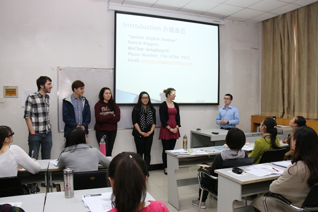 多媒体教室开课,吸引60余名师生参与。本次课堂突出英文学习中的“说”,通过“一对一辅导”等教学方式,发现并纠正中国学生在英文口语发音中存在的问题。