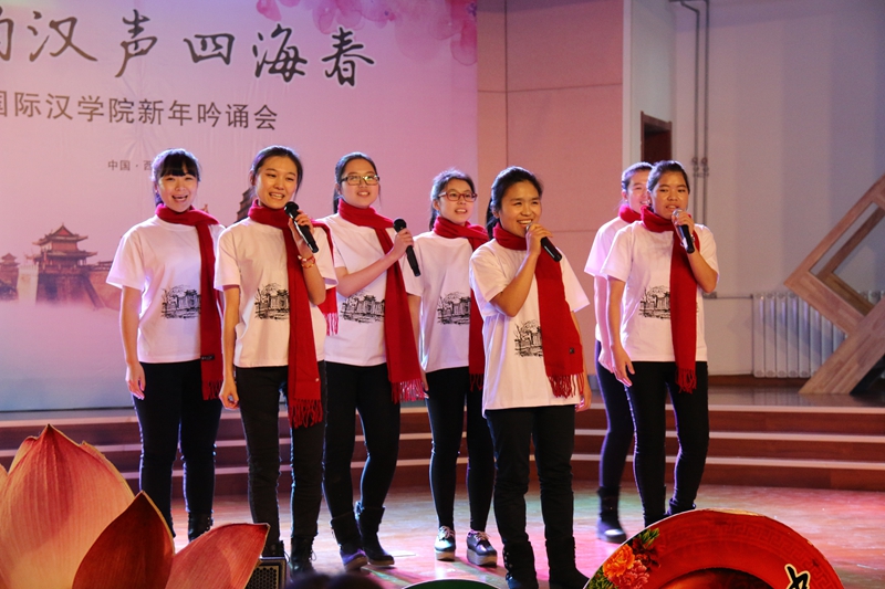 “雅韵汉声四海春”新年吟诵会精彩呈现,中外师生们以吟诵这一独具特色的古雅形式,以言代心,以声为贺,诚挚地表达出对于将至新年的满腔期许,为观众们送上了一场场过目不忘的精彩表演。