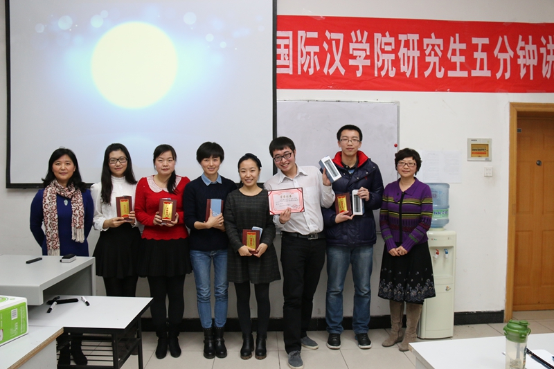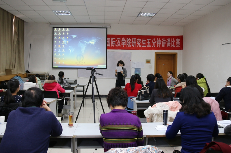 第五届“研究生五分钟讲课比赛”决赛。此次比赛于2014年12月4日进行了初赛,学院2014级全体研究生参加了此次比赛。初赛分为六个小组,每组13人,各有3人共18人进入决赛。决赛当天邀请到了研究生院副院长施建雄教授、司机社