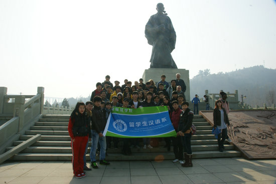 司马迁祠依崖就势的祠墓建筑,气势壮观,恢弘庄严,学生们一边攀登一边交流有关这位中国伟大史学家的信息。在司马迁塑像下,留学生们驻足凝视,回想着课本上的“史家之绝唱,无韵之离骚”,神思邈邈,穿越千年。瞻仰旧址,这位故人在这群外国学子的心中有了活生生的形象。