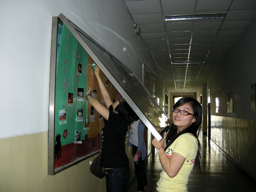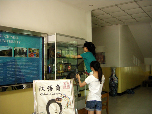 打扫卫生原本是一件很累很枯燥的活儿,但是这一群对母校充满依恋的对外汉语2007级党员们却把它演绎成为一份对母校的依依的恋情,一份对老师的深深的敬意,一份对学弟学妹的浓浓的关爱:轻轻擦拭记录荣誉的照片,见证了他们的成绩;小心传递学院友好往来的礼品,充溢着自豪与欢喜。