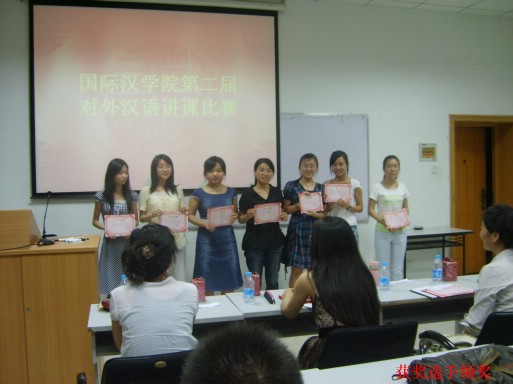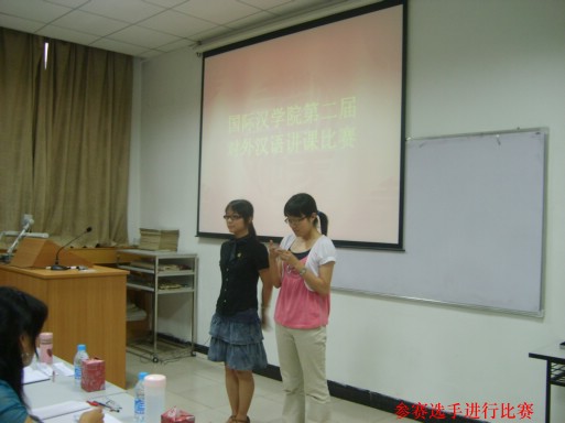 在多媒体教室举办“对外汉语专业七分钟讲课”比赛。莅临赛场的嘉宾有司机社