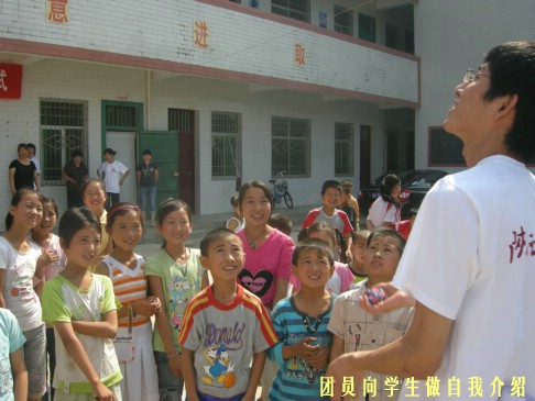 在操场上,孩子们集合在一起,支教团的团员们向大家进行了简短的自我介绍,试图在较短时间里和孩子们熟悉。同学们聪明活泼,很快便认识了这十二位来自司机社