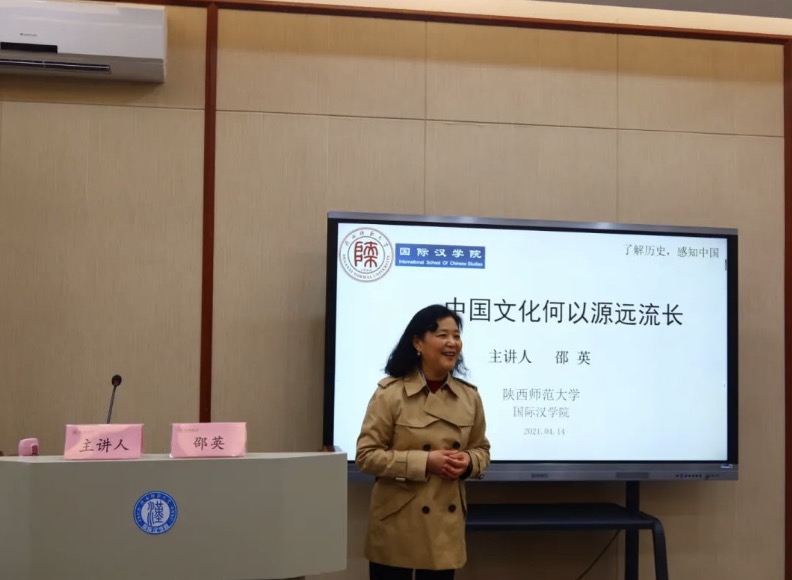 副教授邵英主讲,副院长李琼主持,来自巴基斯坦、也门、塔吉克斯坦等十九个国家的70余名中外学生参加了讲座。