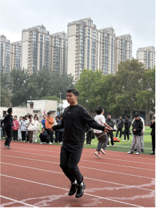 集体项目3分钟10人长绳“8”字跳将现场气氛推向高潮。摇绳的同学沉稳发力,绳索划出规整弧线;跳绳的队员们依次切入、灵活穿梭,形成流畅的“8”字轨迹。即使偶有失误,大家也迅速调整状态,用坚持与团结诠释了“更高、更快、更强、更团结”的奥林匹克精神。