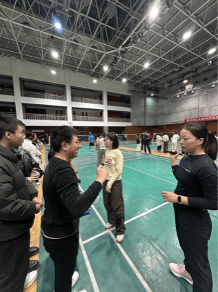 中外师生组成的代表队展现了超强的竞技实力与团队精神。发球、扣杀、吊球、网前截击……每一个动作都干脆利落,每一次配合都默契十足,导师与学生并肩作战。赛场上,他们挥汗如雨、奋勇拼搏,面对强劲对手毫不退缩;赛场下,队友们呐喊助威、相互鼓劲,中外师生的情谊在一次次传球与呐喊中愈发深厚。经过多轮激烈角逐,司机社