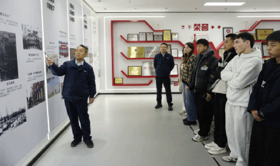 为拓宽国际学生视野,探索校企合作国际化人才培养新路径,1月14日下午,由学院党总支书记李小玲带队,党政办公室主任朱卫强、团委书记翁思洁、辅导员张欣元、留管干部刘小熊和兼职辅导员胡莹、袁嘉晨以及十余名国际学生前往西安标准工业股份有限公司进行参观交流。