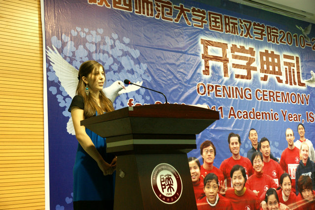 最后,来自哈萨克斯坦的留学生林雅洁结合自己在汉学院学习、生活的经验与感受,向各位老师、学长表示谢意,感谢学校为新生所做的精心安排,感谢师长给予的温暖而热情的照顾。希望所有留学生“学好中国话,朋友遍天下”。