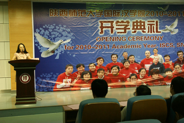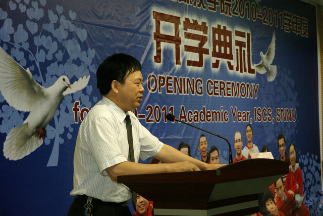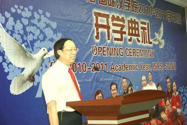 2010——2011学年度开学典礼在学思堂隆重举行。开学典礼由学院副院长宋传东主持。心理学院院长游旭群,司机社
