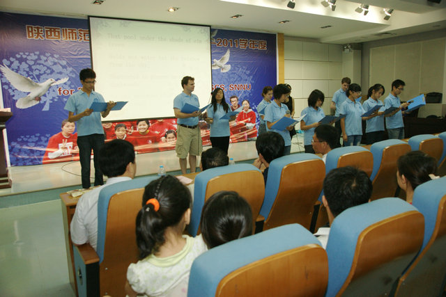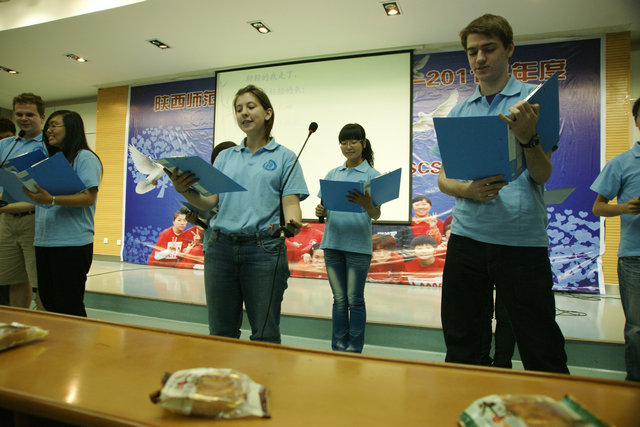开学典礼结束后,中外学生纷纷上台表演具有异国特色的联欢节目。比利时留学生Katty Delogne表演了中国武术《巾帼英雄》,越南学生深情演唱了《越南,你好》。中美学生共同朗诵的《再别康桥》以康桥别离为背景,表达了中外学子对校园生活的珍惜和感激。舞蹈《tell me》、《梦里水乡》、歌曲《峡江情歌》、《给15岁的自己》等精彩节目博得了师生的热烈掌声。联欢会结束后,学院特地为新生分发了月饼,送去美好祝愿。