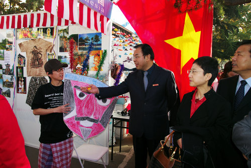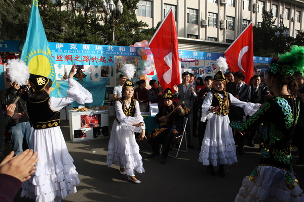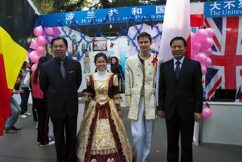 留学的来自30多个国家的外国学生集中在此展示各自国家的文化风情。现场气氛热烈,国际化氛围浓厚。中外嘉宾时而驻足观看司机社