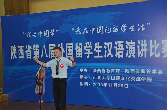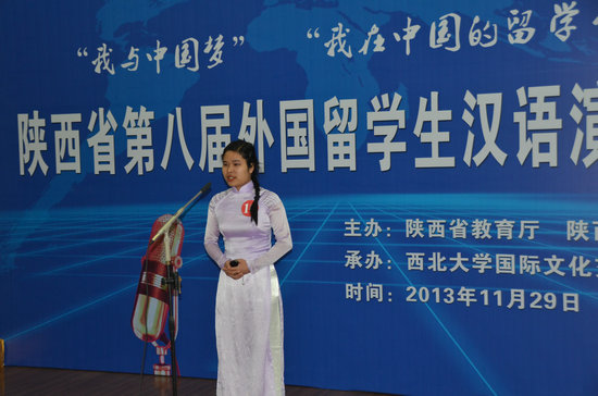 黄熙秀同学以《我的留学生活》为题,凭借其流利而富有感染力的汉语讲述了她来中国后喜欢上中国菜并学做菜的过程和感受;哈萨克斯坦东干学生刘帆以《我的中国梦》为题,用饱满、真挚的情感,流畅的语言表达了其深植于内心的对西安这片故土的感情;英国学生蓝天则以《我一定要成功》为题,讲述了他自己对成功的独特理解:即到中国学汉语,感受中国文化。整场比赛既是选手汉语学习水平的展示,也是思想观点的碰撞。