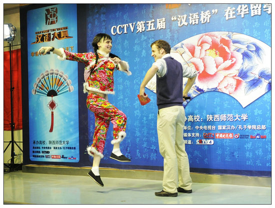 、西安交通大学、西安外国语大学、西北工业大学、西北大学、西安电子科技大学、西北政法大学和陕西中医学院八所高校的34名留学生现场秀汉语,对汉语和中国文化的痴迷溢于言表。