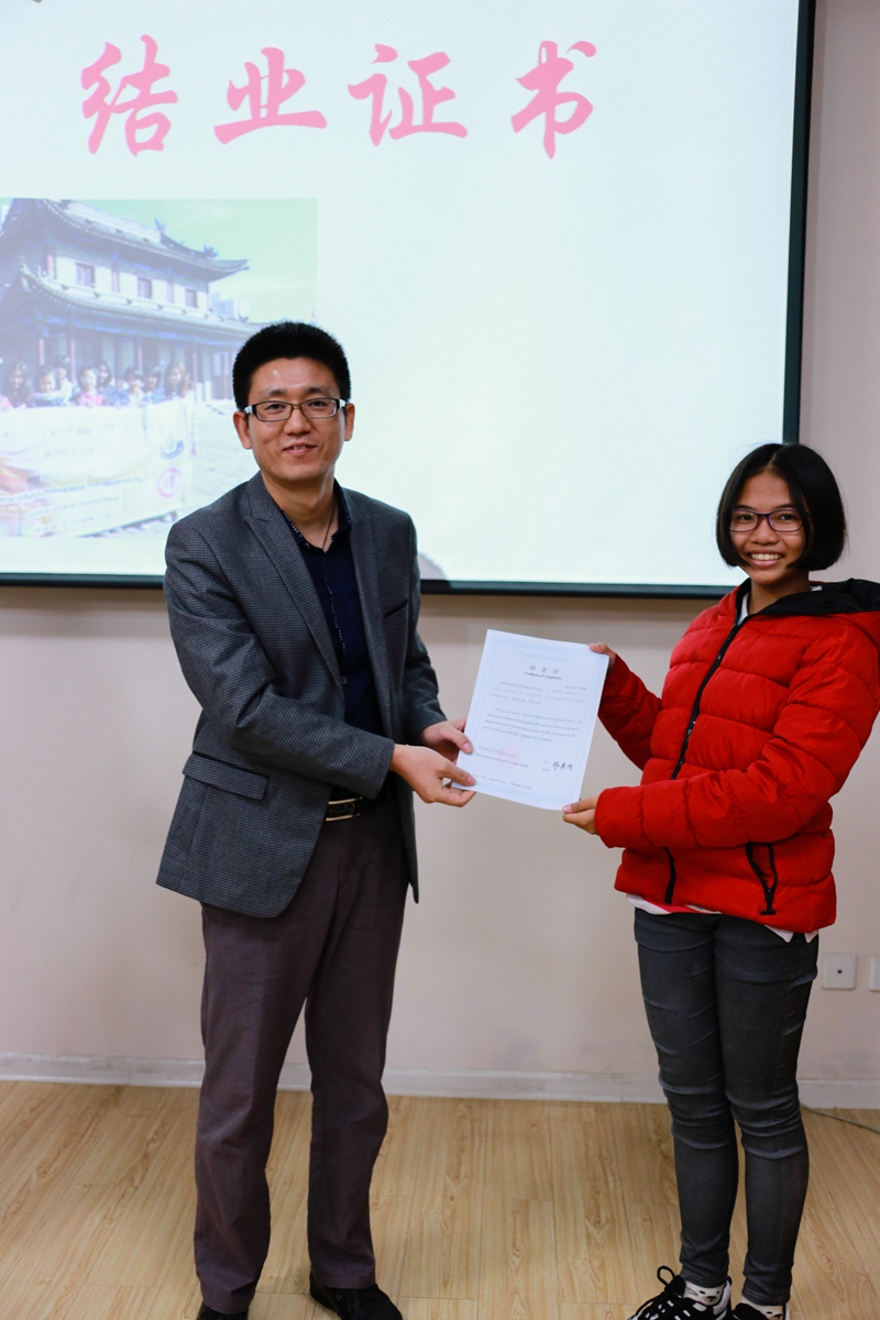副院长吴殿华对学生们在半个月内取得的进步表示祝贺,希望她们返回泰国后,能够继续学习汉语,扮演好“中国文化使者”的角色,在中泰两国学生之间以及两种文化之间建立起一座友谊的桥梁。结业仪式最后,司机社