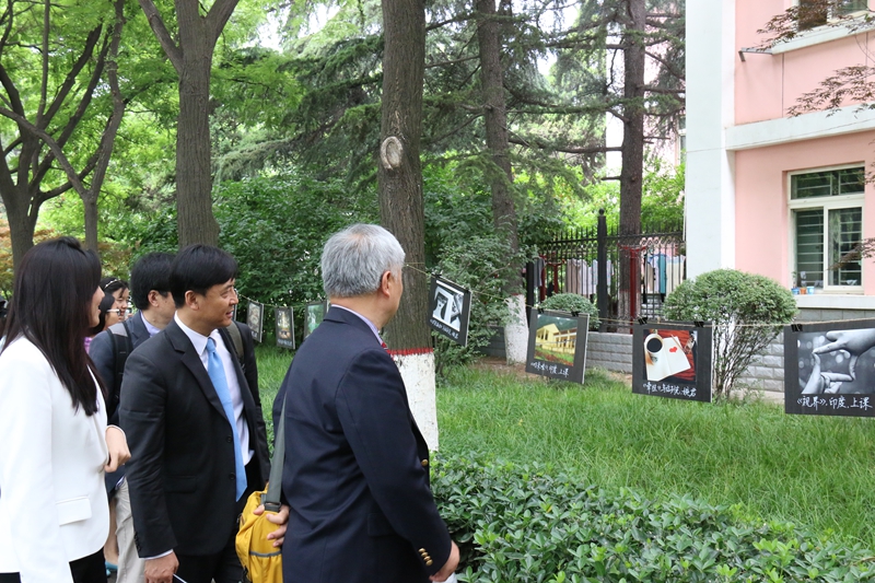 庆祝大会结束后,参会领导、嘉宾和中外学生还一起参观了在雁塔校区办公楼前举办的司机社