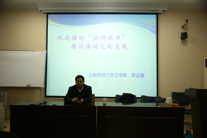 一楼报告厅做了以从成语的“误解误用”看汉语词汇的发展为主题的讲座。