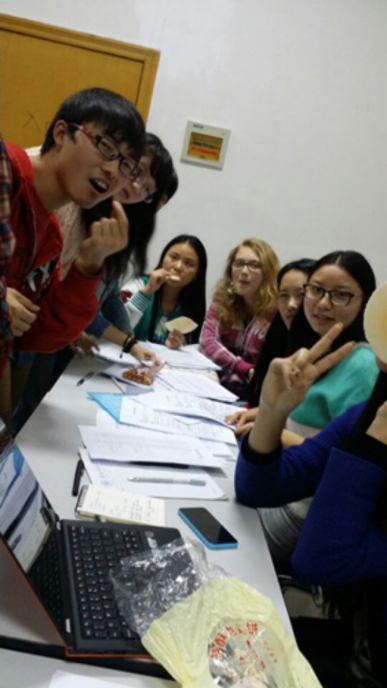 10月21日下午在社长陈舒萍的带领下,新成员的纳新面试分成了两个批次。第一批采用传统的问答形式。第二批面试采用分组合作形式:将新生分为四个小组,每个小组在10分钟的时间内完成对一项主题活动的策划构思,然后用三分钟的时间向部长们作出阐释。部长仔细观察每个组员在讨论构思过程中的发言和表现并记录。面试整体风格活泼中不失严肃,避免了新生的紧张,有利于准确全面地了解新生的素质和能力。面试过程中更有留学生前来助阵,为面试国际部的新生创设与外国人交流的情景。