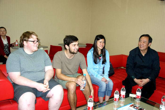 交换学习的北科罗拉多大学交换生进行了亲切交流,深入了解了他们在这里的学习和生活情况。交换生爱望理表示,他在司机社