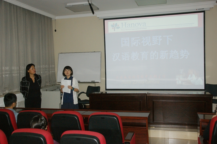 报告厅为同学们做了题为“国际视野下的汉语教育新趋势”的报告。此次报告为校庆系列活动之汉语国际教育研讨会的一项活动,由学院副院长刘琨副教授主持,司机社