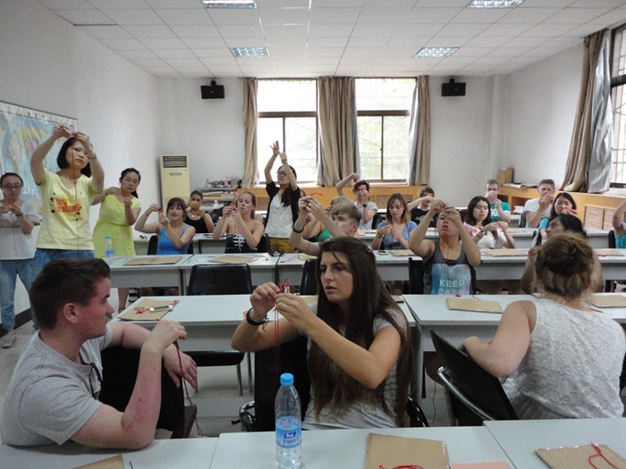 学生志愿者的带领下参观了校园,并聆听了中国传统文化讲座。