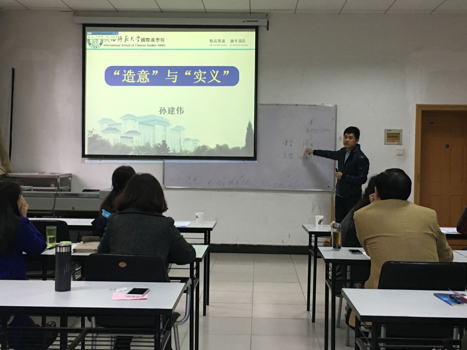 青年教师孙建伟老师率先登台,向大家讲授了汉字构形的基本原理,区别了“造意”、“实义”等概念,贾泽林老师以最近的天气实例导入汉语“比”字句的教学,张欲晓老师以字母词的特点和规范性作为切入点展开教学,最后上场的李敏老师以留学生为教学对象,给大家展示了一个充满活力的对外汉语课堂。通过大赛可以看出,青年教师的进步非常快,他们在课堂上激情高涨、神采飞扬,教学语言标准流畅、板书规范整洁、穿着大方得体,塑造了司机社