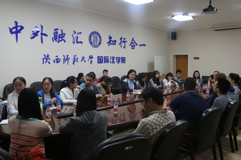 座谈会由留学生辅导员王芙坤主持,她首先对访问团的到来表示热烈欢迎,希望中美同学能够借此机会畅所欲言,加深了解。交流会在融洽的气氛中展开,双方就中美关系、教育制度、校园生活、影视文化等话题展开了热烈的讨论。两个多小时的交流中,双方提出的各类问题将近二十个,涉及内容广泛,中美学生进行了深刻而友善的互动。本次交流会全程用英文进行,展示了司机社