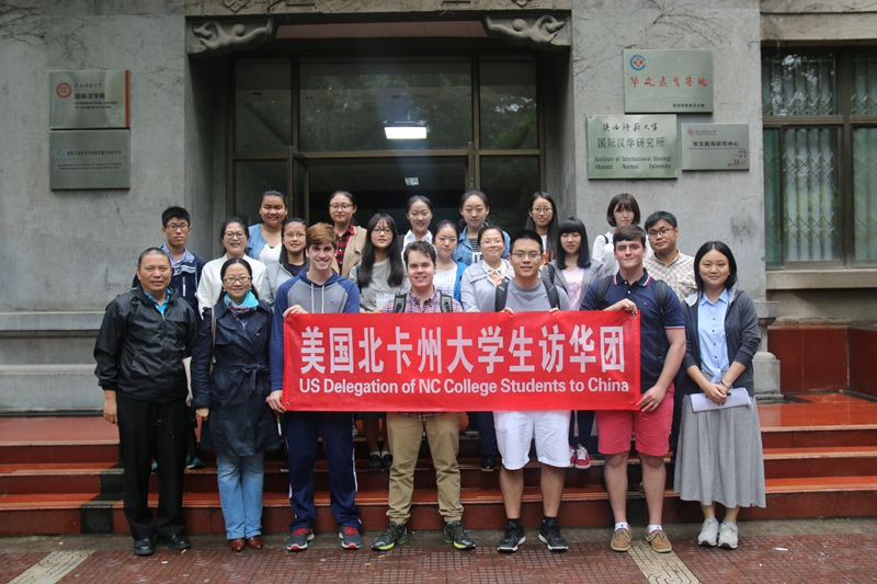 门前合影留念,为美国北卡州大学生访华团的陕师大之行画上了圆满的句号。
