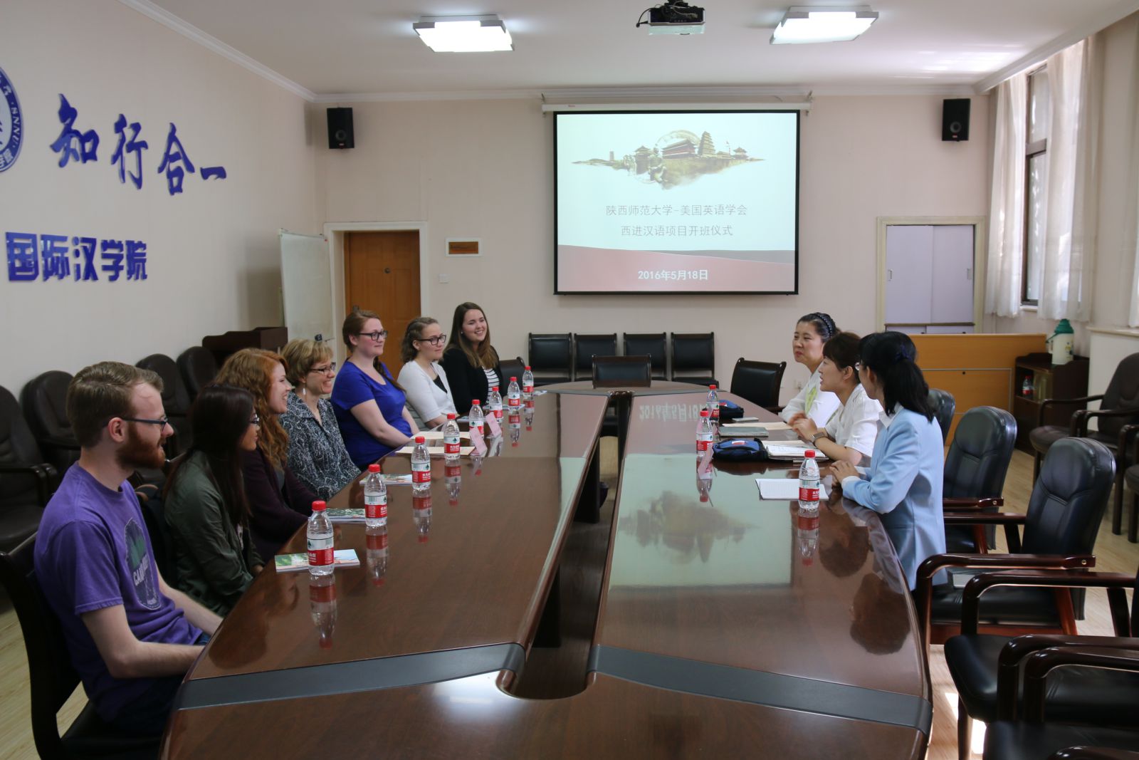 ( SNNU )和美国英语学会(ELIC)合作的“西进汉语项目”之北美大学初级汉语课程班开班仪式,于2016年5月18日下午,在司机社