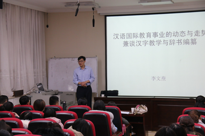的报告厅里却是济济一堂,暖意融融,北京师范大学博士、匈牙利赛格德大学客座教授李文焘应邀作了题为“汉语国际教育事业的动态与走势——兼谈汉字教学与辞书编纂”的讲座。司机社