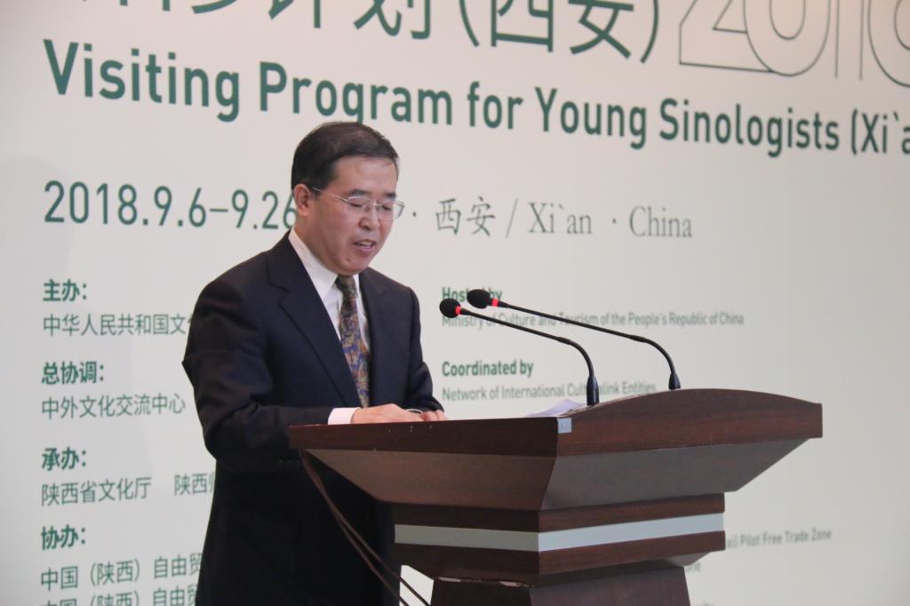 陕西省文化厅厅长任宗哲从陕西独特而悠久的历史文化背景出发,介绍了西安作为“一带一路”倡议起点城市的发展成就。随着习近平主席“一带一路”倡议的提出,作为古丝绸之路起点的西安,从中国的内陆腹地城市,一跃成为中国对外开放的前沿,希望通过在西安的研修,各位青年汉学家可以更加深入地了解“一带一路”倡议,提升汉学研究水平。此次研修班也被纳入了“第五届丝绸之路国际艺术节”框架中,希望各位汉学家通过艺术节的各项活动,感受古今丝路的文化魅力。