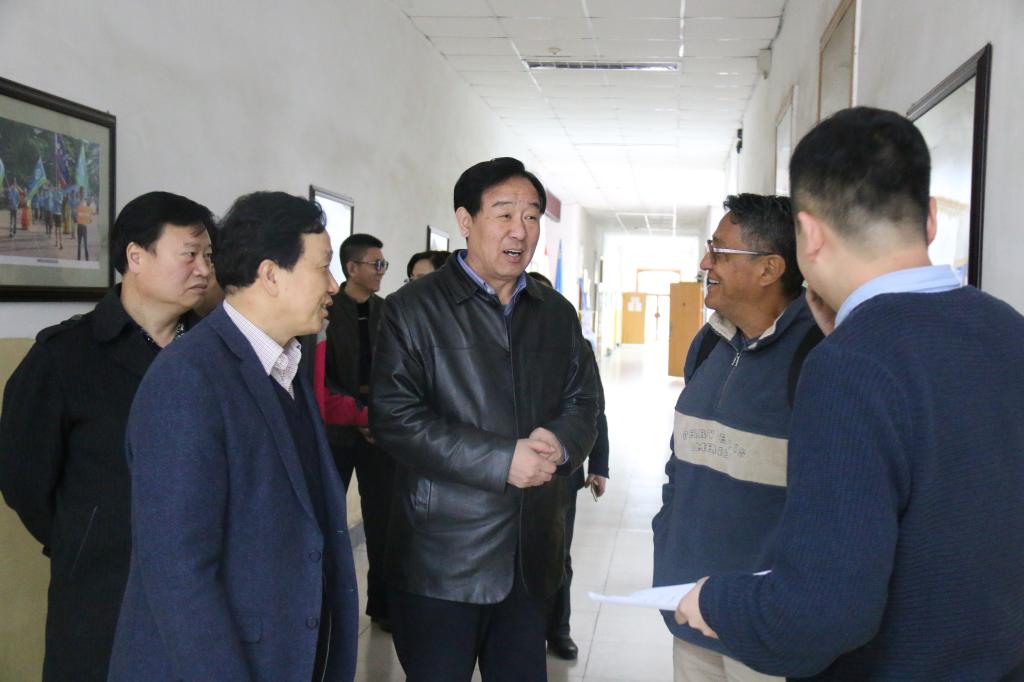 检查新学期准备工作。院长张建成介绍了本学期留学生录取及报到情况,本学期已录取留学生93人,现已报到59人,是近年来春季学期招录学生人数最多的一年,各项新生报到及入学教育工作正在有序进行中。