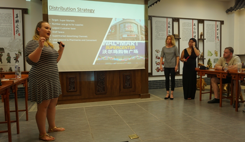 来自美国博林格林州立大学的5名学生分为两组做研修汇报,两组分别以当今中国社会中的环境污染、“剩女”现象为题,阐述自己的调查结果和观点看法,随后,中方语言小伙伴和美方学生就上述问题进行了讨论。研修汇报结束后,中美双方带队老师及项目负责人予以点评,对学生们的精彩表现给予了赞扬,为学生们对知识的活学活用感到欣慰,并勉励大家回到美国之后继续加强对中国传统文化及当今社会状况的学习和了解。