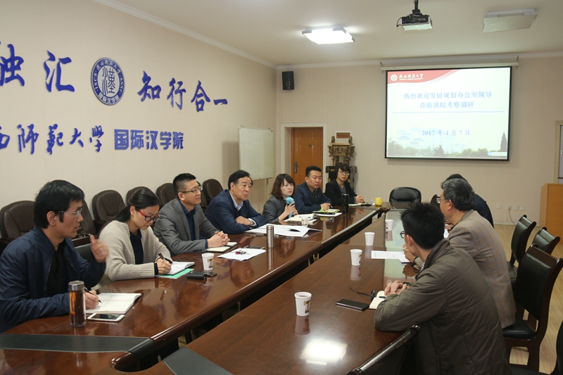 的各项工作,甘晖书记3月份就学院相关工作开展了专门调研并做出指示。发展规划办公室一行此次到学院调研,就是希望与学院深入沟通,全面把脉学院下一步转型发展和深化改革面临的困难问题,寻求破解之道。通过今天的座谈,对学院的整体情况及未来发展愿景有了更加深入的了解和认识。孔祥利指出,希望大家站在提升办学国际化,弘扬中华文化,传播中国声音,理顺体制机制,激发学院办学活力,增强办学实力,提高人才培养质量,关注关爱学生,增强师生的获得感与认同感的高度,双方共同努力,继续跟进这项工作,尽早拿出切合学院实际及发展需求的机制体制改革实施意见,为学校党政领导研究决策,提供依据与参考。