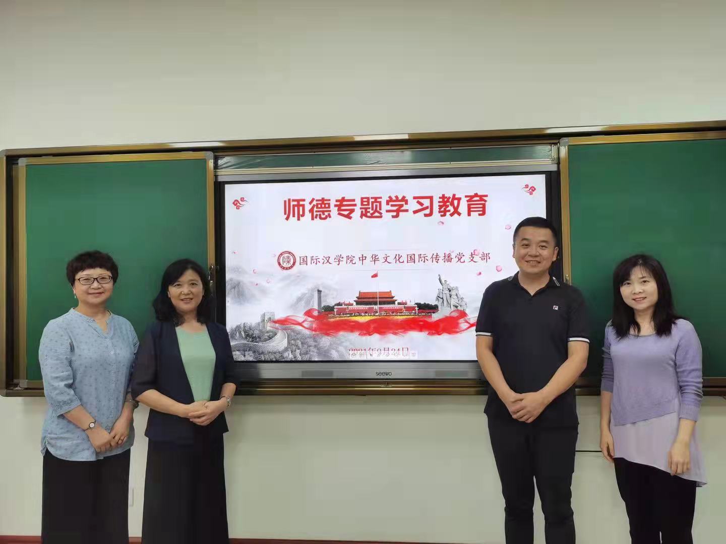 2021年9月10日是我国第37个教师节,为激发党员教师静心教书、潜心育人的荣誉感、责任感和使命感,中华文化国际传播党支部于9月24日下午开展了师德专题学习教育活动。活动以观看优秀典型事迹纪录片、个人谈观后感的形式进行。