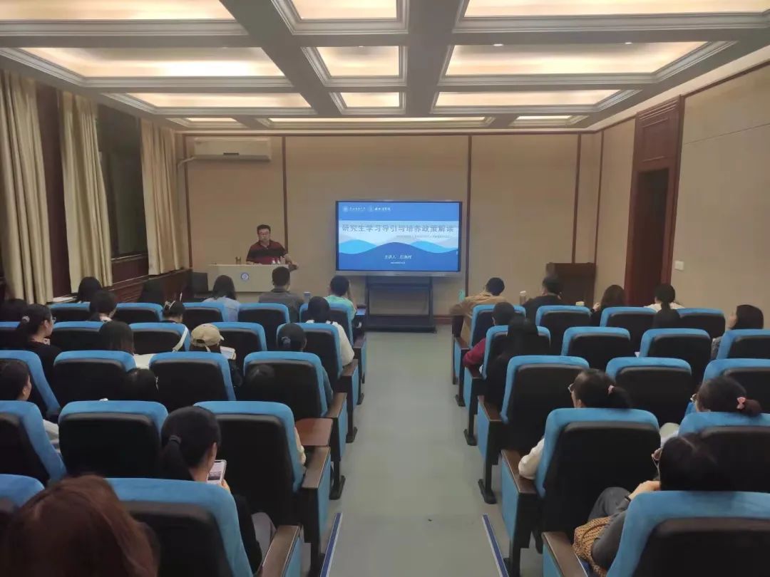 在学院一层报告厅举行了第二场入学教育系列活动,主题为“研究生学习导引与培养政策解读”。本次讲座由副院长石洛祥教授主讲,由团总支书记兼研究生辅导员朱红楠主持。