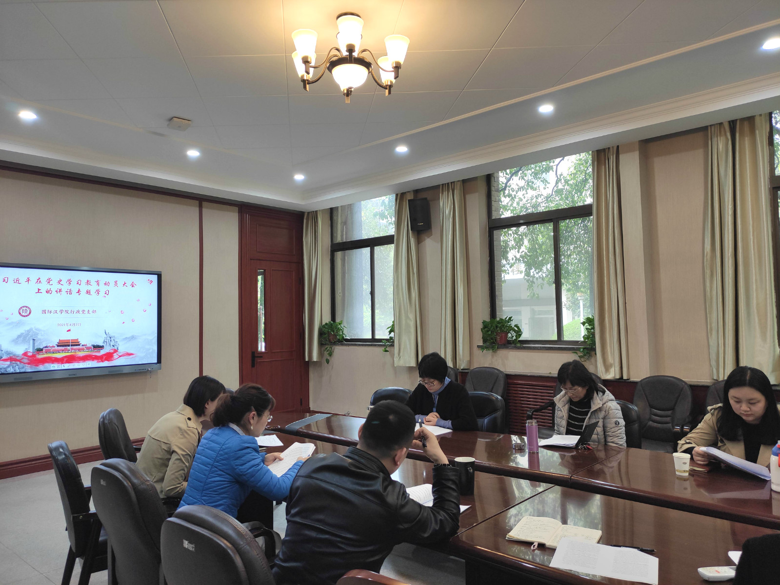 行政党支部开展了以学习贯彻习近平总书记在“党史学习教育动员大会”上的重要讲话为主题的专题学习,会议由支部组织委员贾晨主持,全体党员参加。