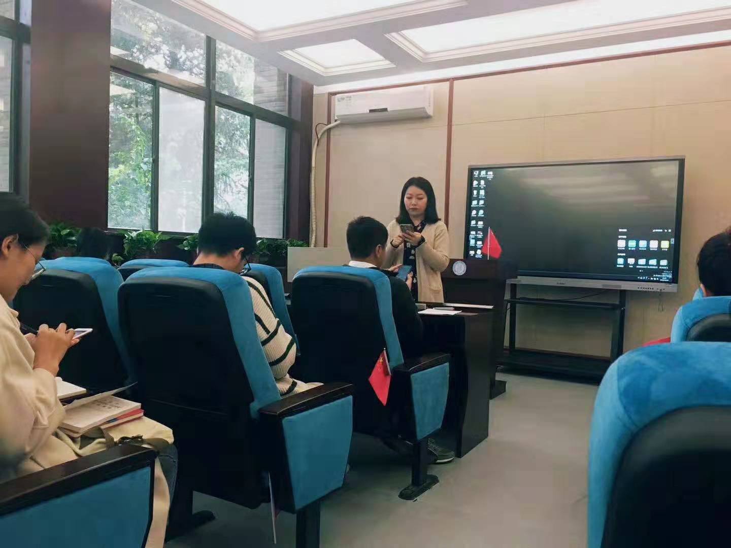 10月14日下午14:30,研究生第一党支部书记贺圆圆以“三会一课”为主题,分别介绍了支部党员大会、支部委员会、党小组会、党课的基本程序、有关规定及其职能。她主要从“三会一课”制度对于加强党的建设的基础性作用来谈个人的学习体会。她讲到,“三会一课”制度是健全党的组织生活,严格党员管理,加强党员教育的重要制度。只有长期坚持这一制度,才能增强党基层党组织的创造力、战斗力、凝聚力。她还从内容要突出政治学习和教育,突出党性锻炼;时间要做到定期、按时等方面,对支部日后如何更有效落实“三会一课”提出了建设性的建议。