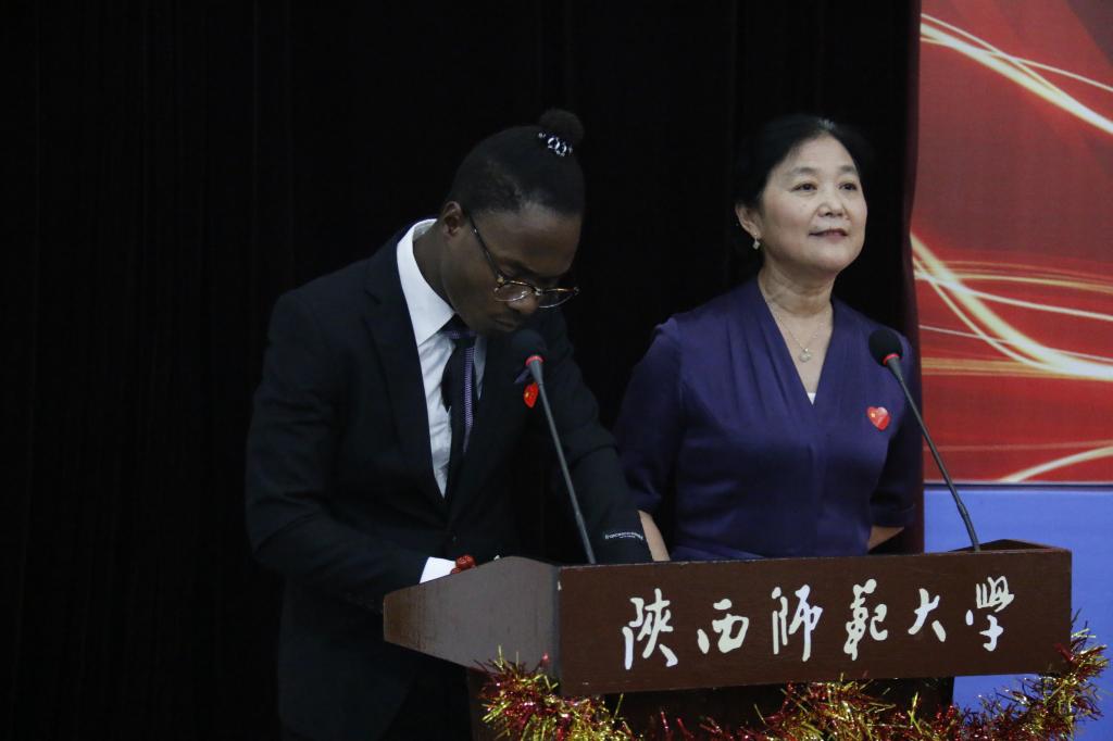 副院长李琼和来自贝宁的留学生伊玛内利以中英双语共同主持。
