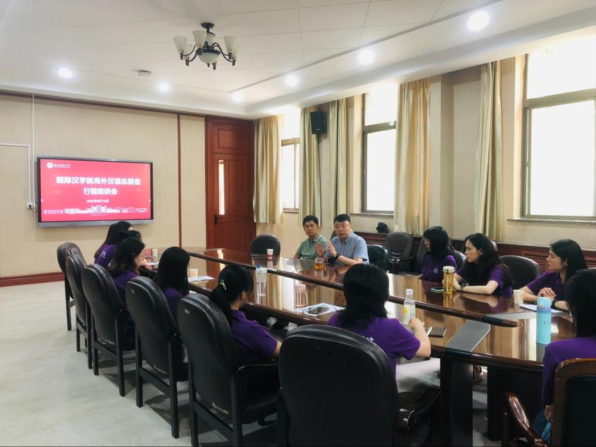 举行了国际中文教育志愿者行前座谈会。学院党总支副书记张昊、学院副院长孙建伟出席座谈会,顺利通过语合中心选拔的13名志愿者同学参加。