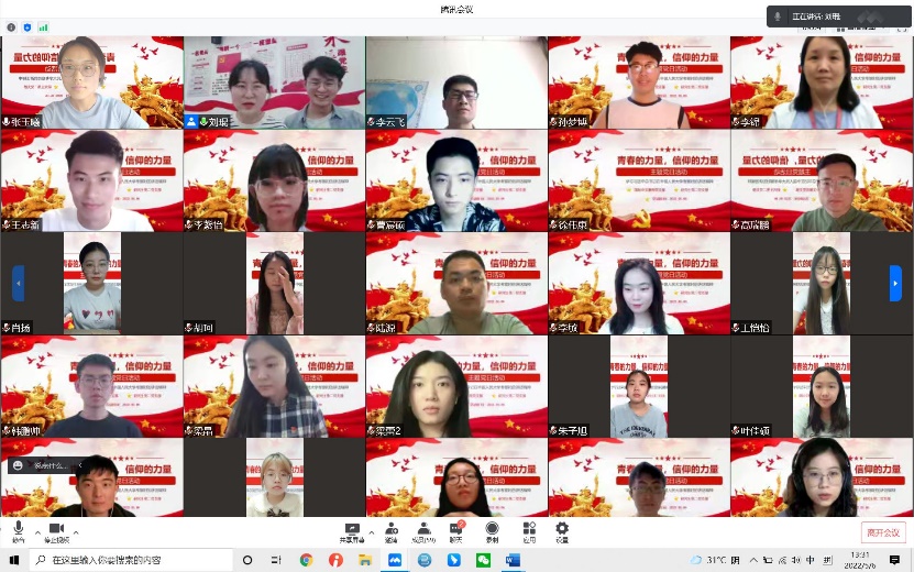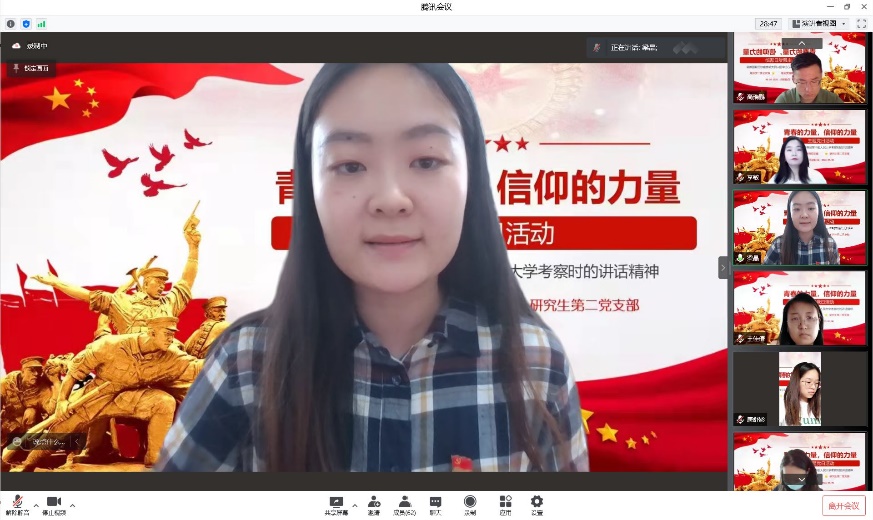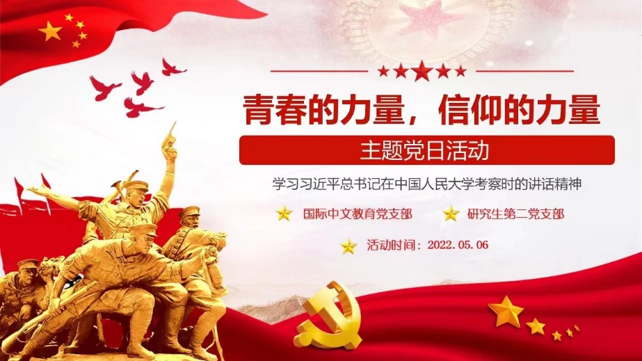 国际中文教师党支部、研究生第二党支部全体师生党员于5月6日中午13:30汇聚云端,联合举办了“青春的力量,信仰的力量”主题党日活动。
