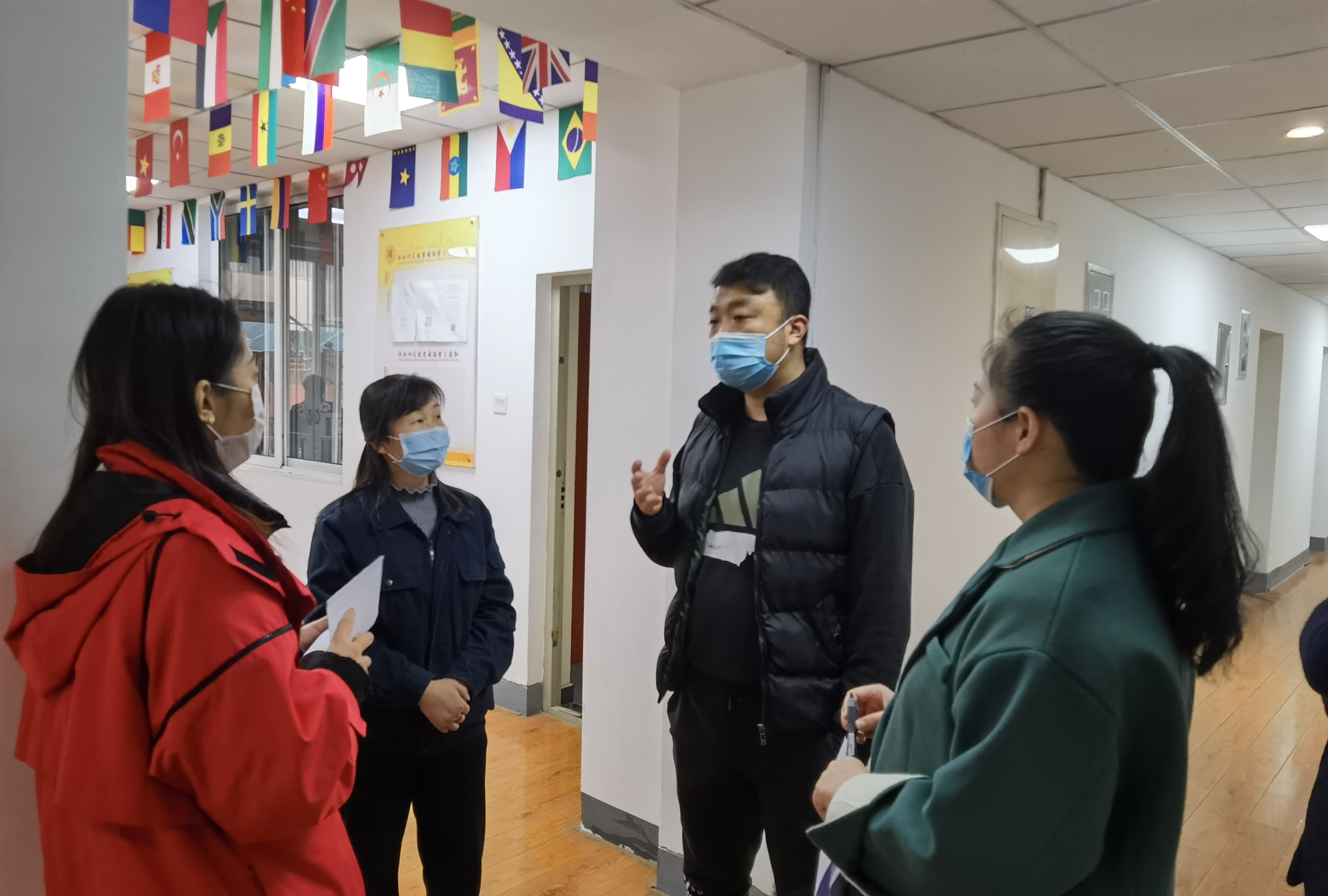 党总支副书记张昊带领学工组全体专兼职辅导员深入学生公寓和学院教学楼,对目前在校的研究生和所有在雁塔校区居住的学校各学院国际学生进行了走访探望。