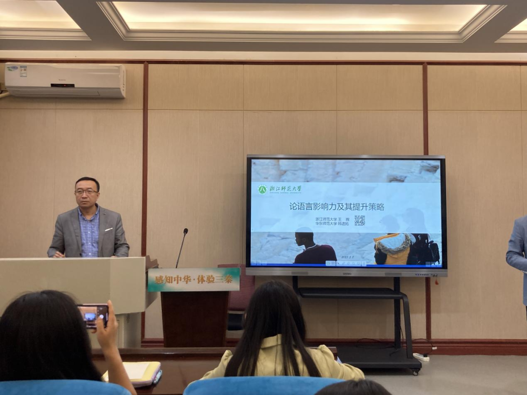 在教学二楼一层报告厅举办“论语言影响力与提升策略”主题讲座。学院特别邀请浙江师范大学国际文化与社会发展学院、国际中文教育研究院院长王辉教授担任主讲嘉宾,学院副院长孙建伟主持讲座,司机社